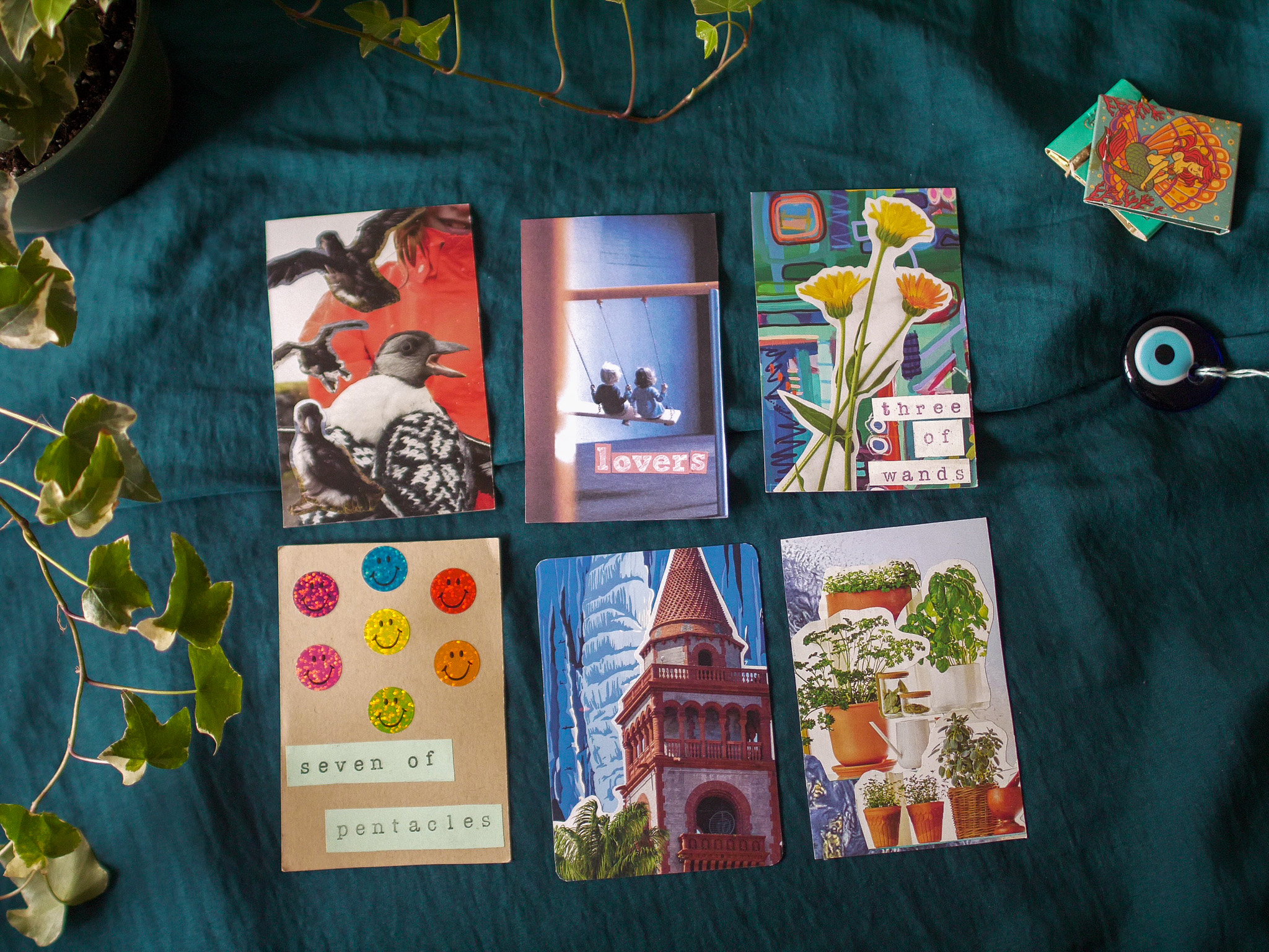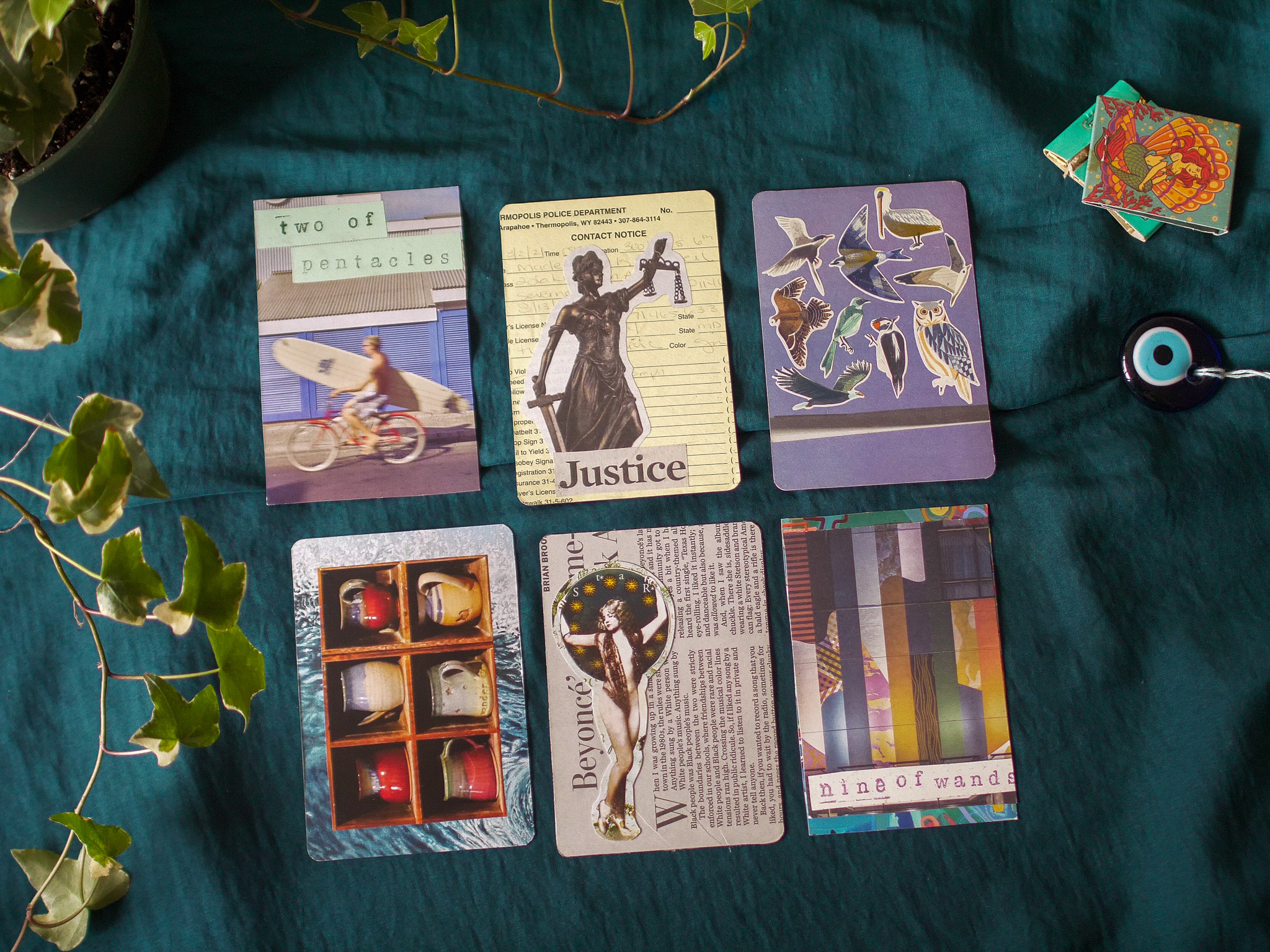 My most ambitious collage project, and one I am constantly looking to expand. I followed the superstition that you should be gifted your first tarot deck, and although I enjoy reading, I don't do it frequently and always reference a guidebook. This project, started in 2023, pushed me to learn more about the cards to create collages imbued with personal meaning and connection. To date, I have made a full deck, plus duplicates of many major arcana cards.